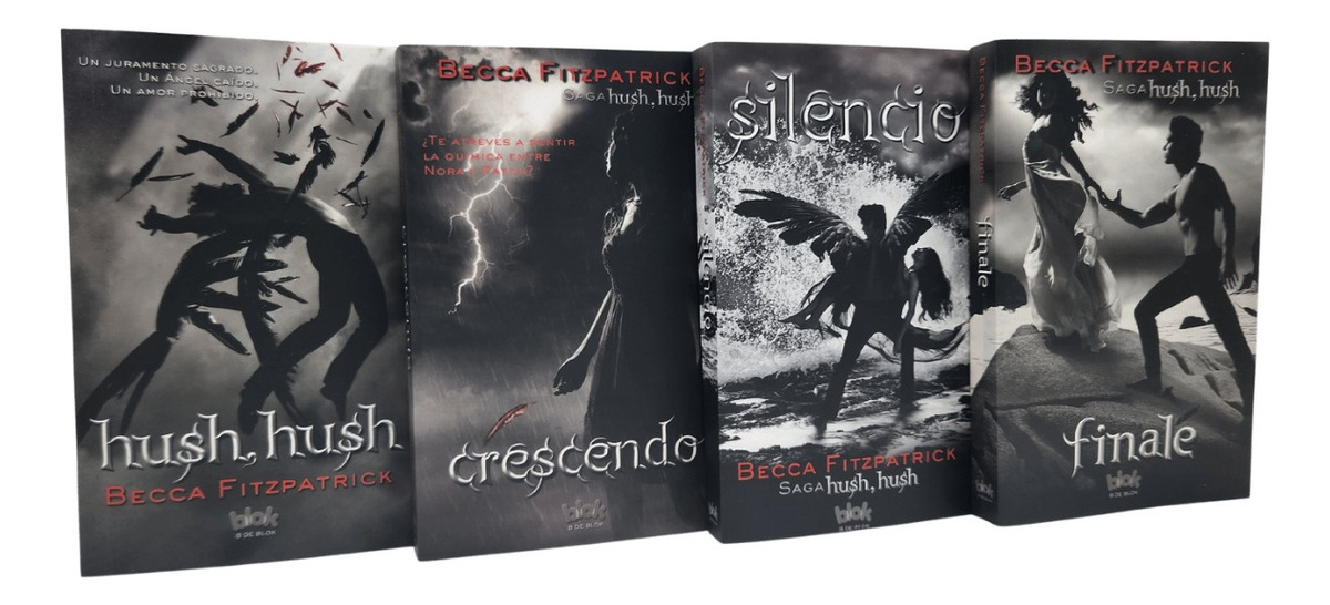La exitosa saga «Hush Hush» al completo, al alcance de todos sus fans. Un éxito sin precedentes de público y crítica. Una saga de novela romántica paranormal que cuenta con millones de seguidores en todo el mundo. Un juramento sagrado. Un ángel caído. Un amor prohibido. Hush hush Enamorarse no entraba en los planes de Nora Grey. Hasta la llegada de Patch. De pronto, Nora se encuentra en medio de una ancestral batalla entre los inmortales y los que han caído. Crescendo La relación entre Nora y Patch parece encontrarse en horas bajas, mientras ella intenta averiguar qué secretos se esconden detrás de la muerte de su padre. Amor, intriga trepidante y ángeles diabólicamente seductores. Silencio La confusión se ha disipado y parece que ya no hay nada que perturbe la relación entre Patch y Nora. Sin embargo, tendrán que enfrentarse a un villano que pretende acabar con cuanto han luchado por conseguir de una vez y para siempre, incluido su amor. Finale Cuando Nora se convierte en la líder de los Nefilim no le queda más remedio que ir a la guerra contra los ángeles caídos (y destruir a Patch). El esperado final de la saga Hush Hush. ¿Logrará el amor conquistarlo todo?